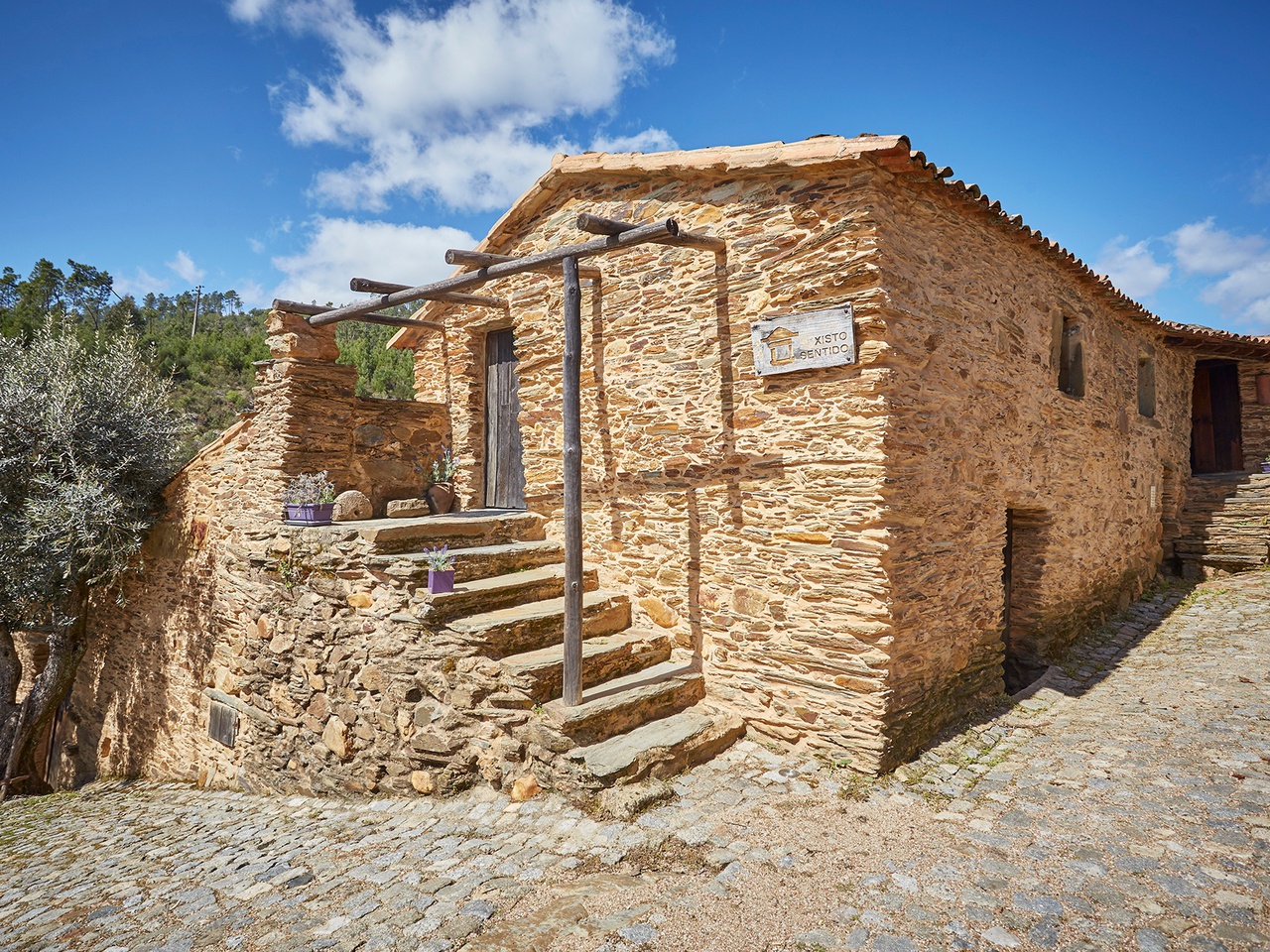 Martim Branco, in the municipality of Castelo Branco, Xisto Sentido consists of four traditional schist houses: Casa Alfazema, Casa Rosmaninho, Casa Amores Perfeitos, Casa Alecrim and Casa da Giesta.