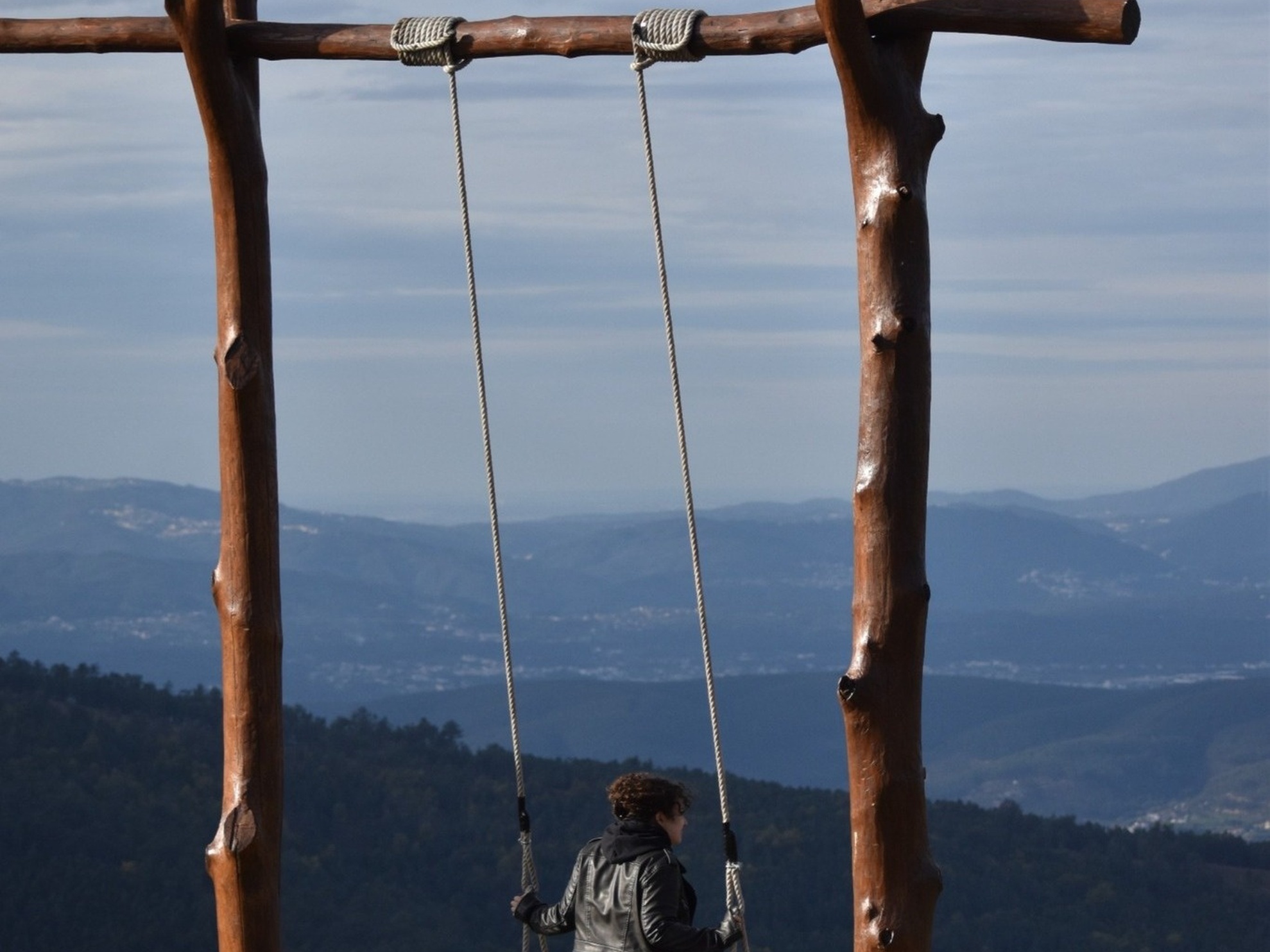 O baloiço das Aigras com vista para Serra do Caramulo.