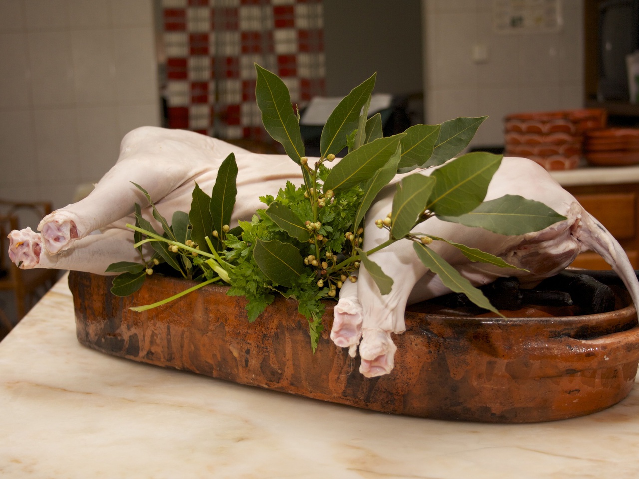 The kid should be young, no more than a month and a half old. The dead goat is “stunned”, i.e.: the goat is put little by little into boiling water and the hair is removed as it is boiled. Be careful not to punctured the skin. Once it is cooked, the kid is gutted. It is washed very well and left to drain overnight. The next day, the kid is spread with a paste made with the garlic, pepper, salt and white wine. Mince the kid’s offal, add the minced ham, some parsley and a bay leaf. This makes a stuffing, which is added to a little of the paste and put in the kid’s belly, the opening being sewn up with a needle and thread. Leave to rest for three or four hours. The goat is then coated with lard and placed on laurel sticks in a clay roasting area that serves as a grill. Every now and then sprinkle with the wine, and when it is done on one side, turn it to roast on the other.