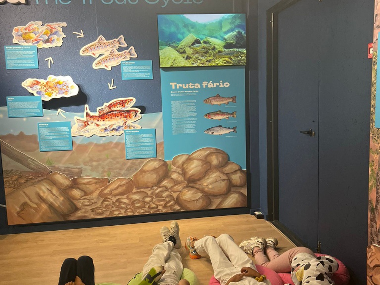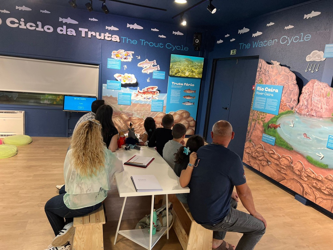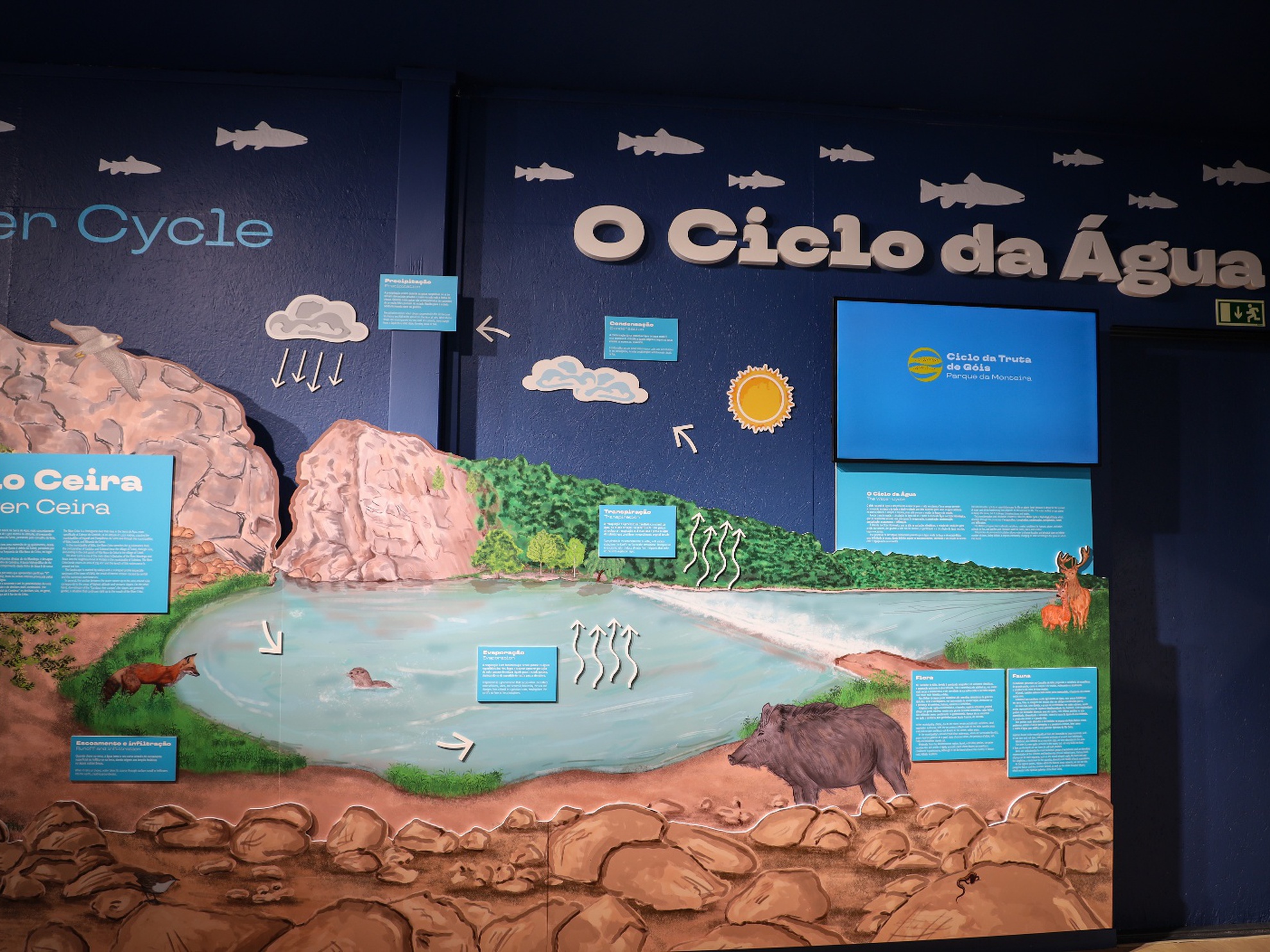 Information is available through informative panels, descriptive videos, virtual reality, and the corresponding educational plan. Additionally, the outdoor area of the exhibition space has been prepared to host environmental interpretation activities. Particular attention is given to the brown trout, with tanks built for breeding this species. In this way, the aim is to revitalize the fish density in the Sótão River, one of the tributaries of the Ceira River.