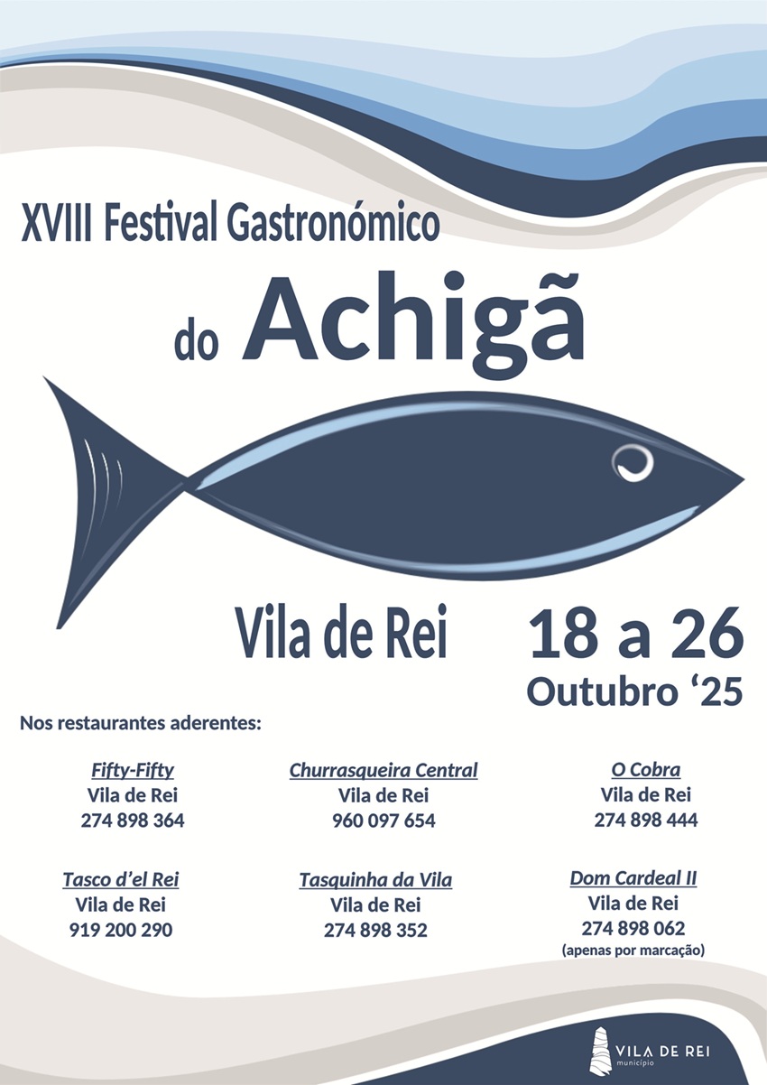 De 18 a 26 de outubro, Vila de Rei volta a ser o destino de eleição para os amantes da boa mesa, com a realização da 18.ª edição do Festival Gastronómico do Achigã. Organizado pelo Município de Vila de Rei, este evento já é uma referência incontornável no calendário gastronómico da região.