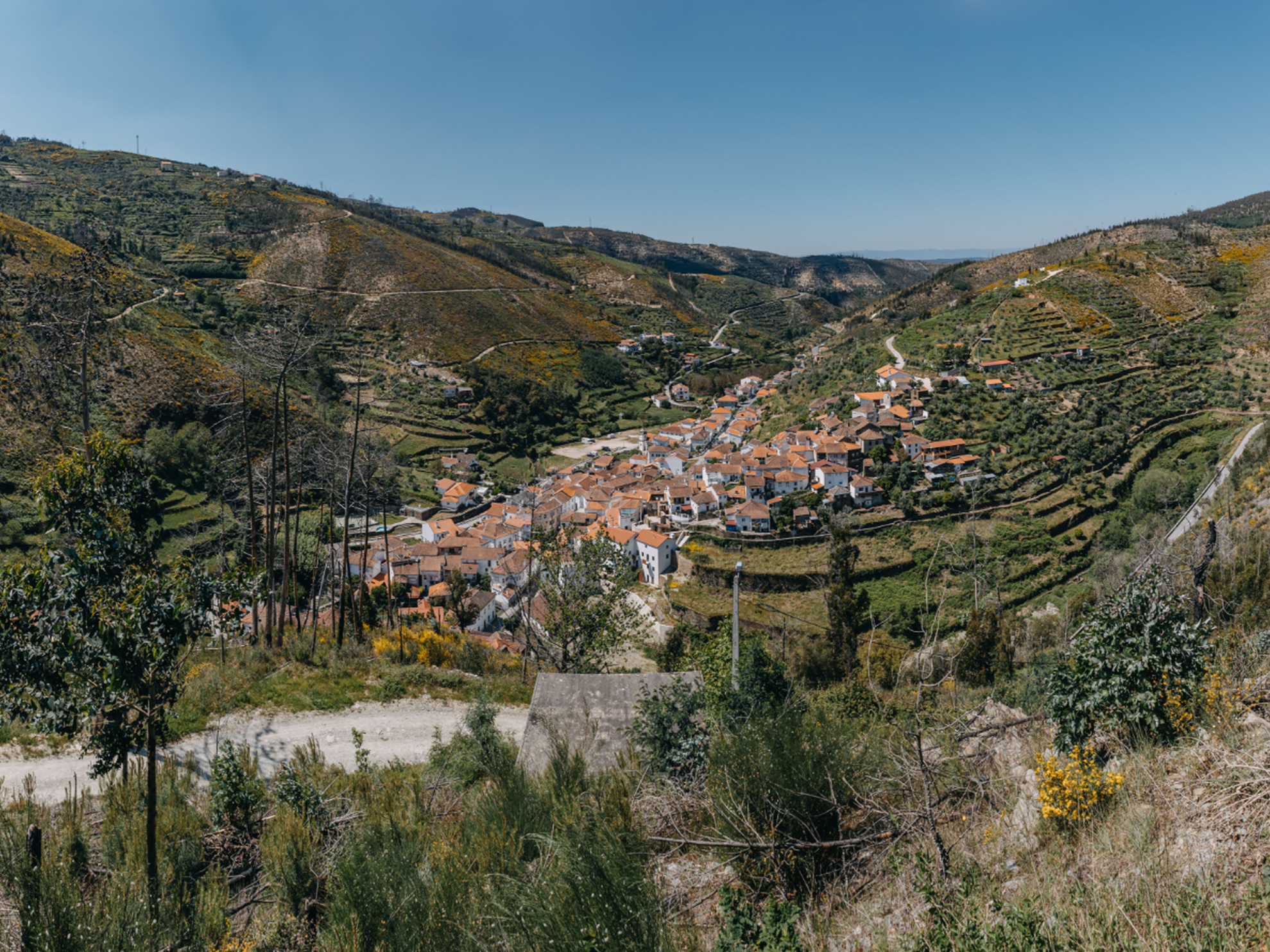 Pequena aldeia solitária, estendendo-se na vertente de uma serra apinada, ladeira acima, a sua casaria rústica coberta de lousas ardosianas, quase primitiva, enquadrando-se em socalcos verdejantes, que se enfileiram também na serra fronteira e banhando os pés numa ribeira sussurrante, salpicada de azenhas