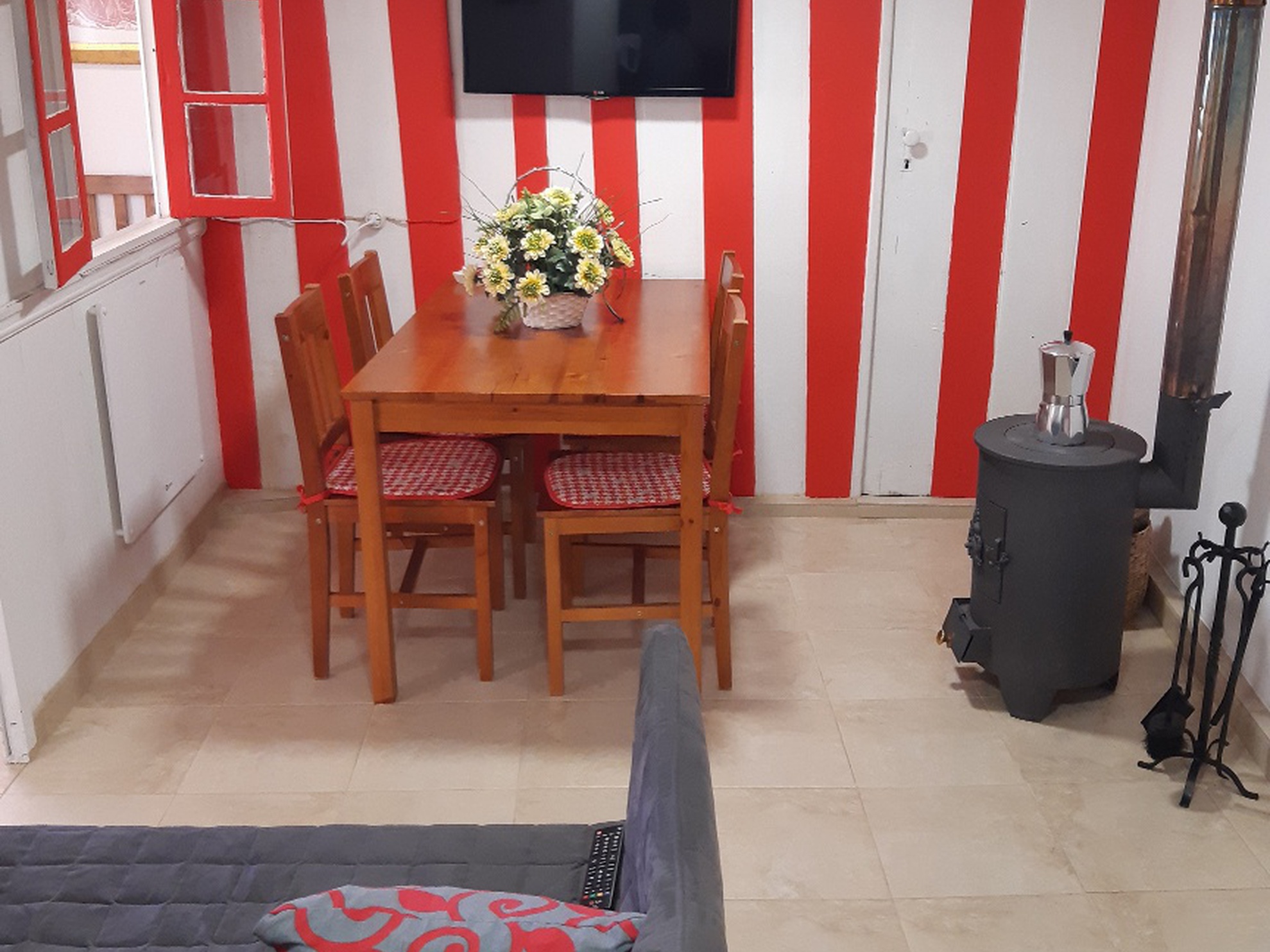 Este alojamento tem 2 quartos, cozinha com frigorífico e microondas, uma televisão de ecrã plano, uma área de estar e 1 casa de banho com chuveiro. Para os meses mais frios, há uma salamandra pronta para aquecer o ambiente e proporcionar-lhe todo o conforto.