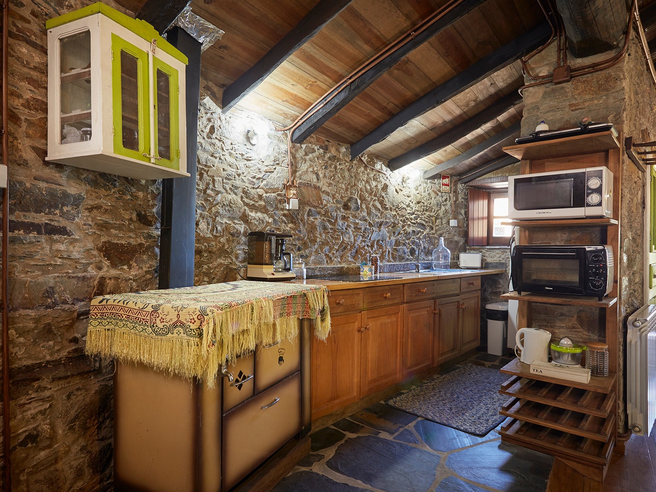 No interior, mantiveram-se alguns pormenores originais da casa, como objetos antigos, o forno a lenha e a cozinha antiga, que foi reconstruída e mantida como museu. Tentou-se, desta forma, interligar o antigo com o conforto.