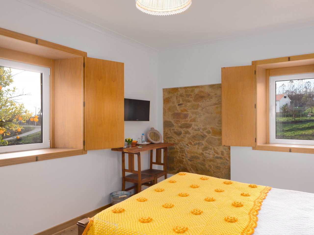 Nesta casa as paredes contam histórias, cada pedra foi colocada à mão, o forno a lenha foi engenhosamente construído tal como toda a estrutura da casa.