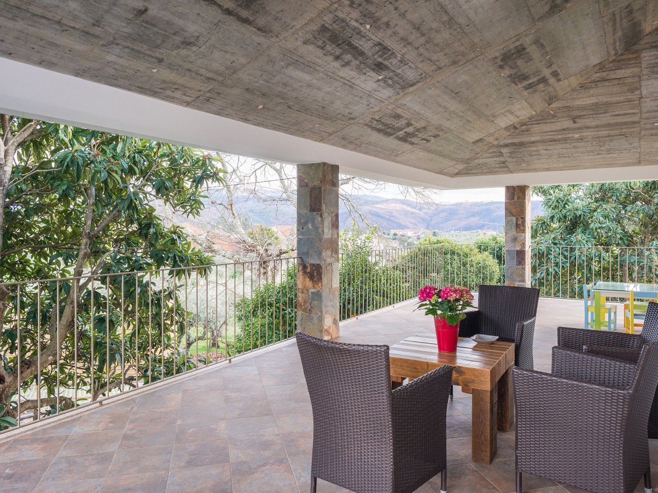 Nesta casa as paredes contam histórias, cada pedra foi colocada à mão, o forno a lenha foi engenhosamente construído tal como toda a estrutura da casa.