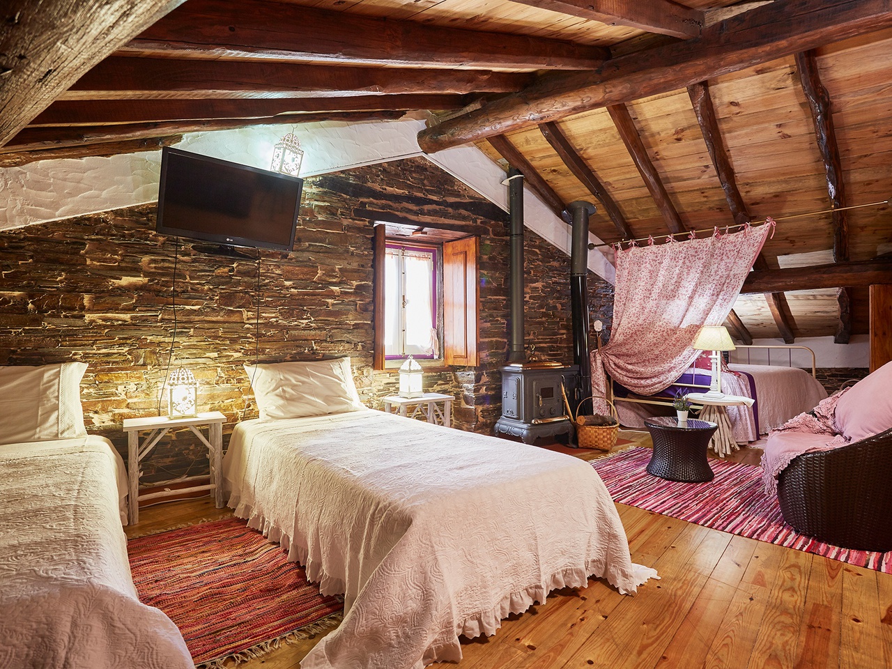 No 2.º piso, existe um quarto amplo com várias camas e uma casa de banho privativa. As paredes são em xisto, o teto e soalho de madeira. À disposição existe uma salamandra para aquecimento e duas janelas com vista panorâmica para a serra do Açor.