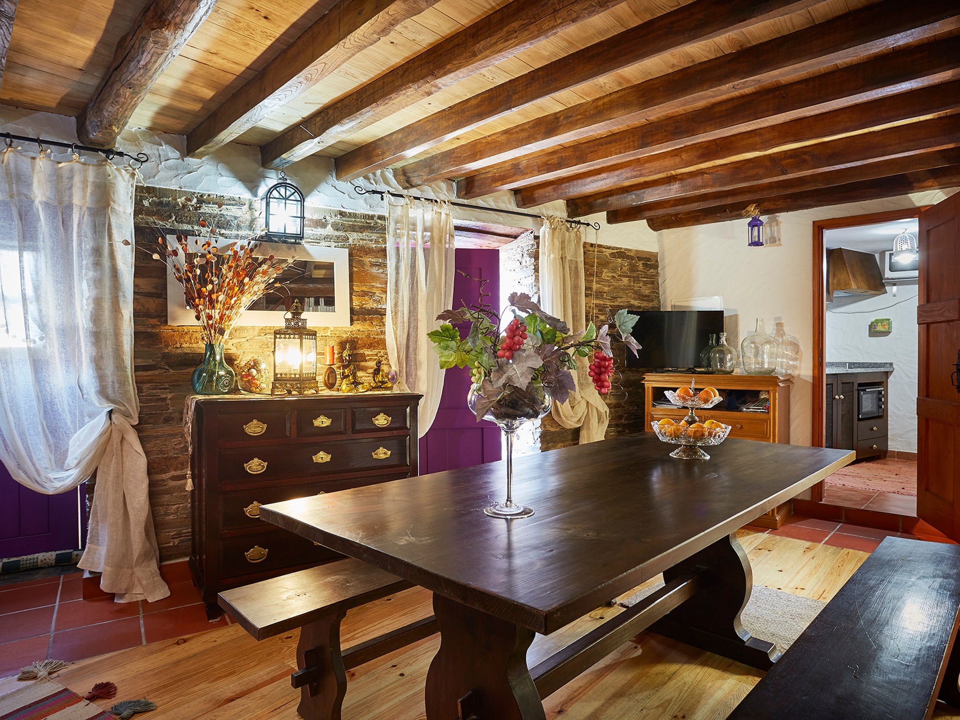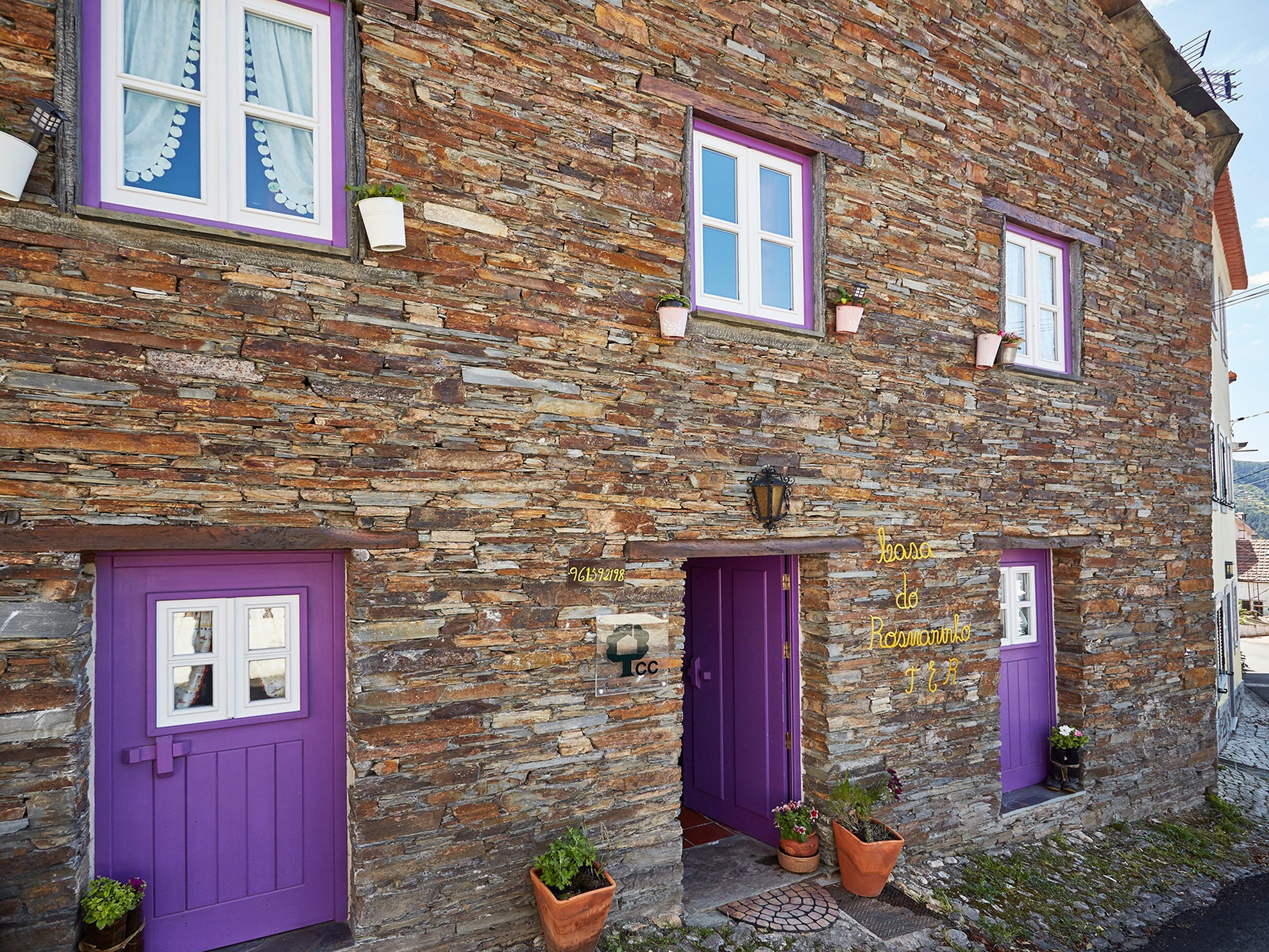Em todos os pisos existem fogões de sala. A casa é de fácil acesso e identificação, pois situa-se à beira da estrada principal e para além do nome na fachada possui todas as portadas pintadas com a cor singular do rosmaninho.
