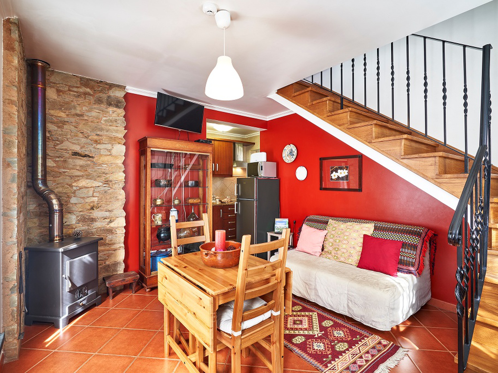 A decoração atual integra peças do “antigamente”. O alojamento tem ainda uma sala de apoio logístico, estacionamento, alpendre com barbecue, piscina, jardim, terreno de oliveiras e árvores de fruto. O azeite de paladar agradável e os frutos do pomar marcam, muitas vezes, presença na mesa de refeição.