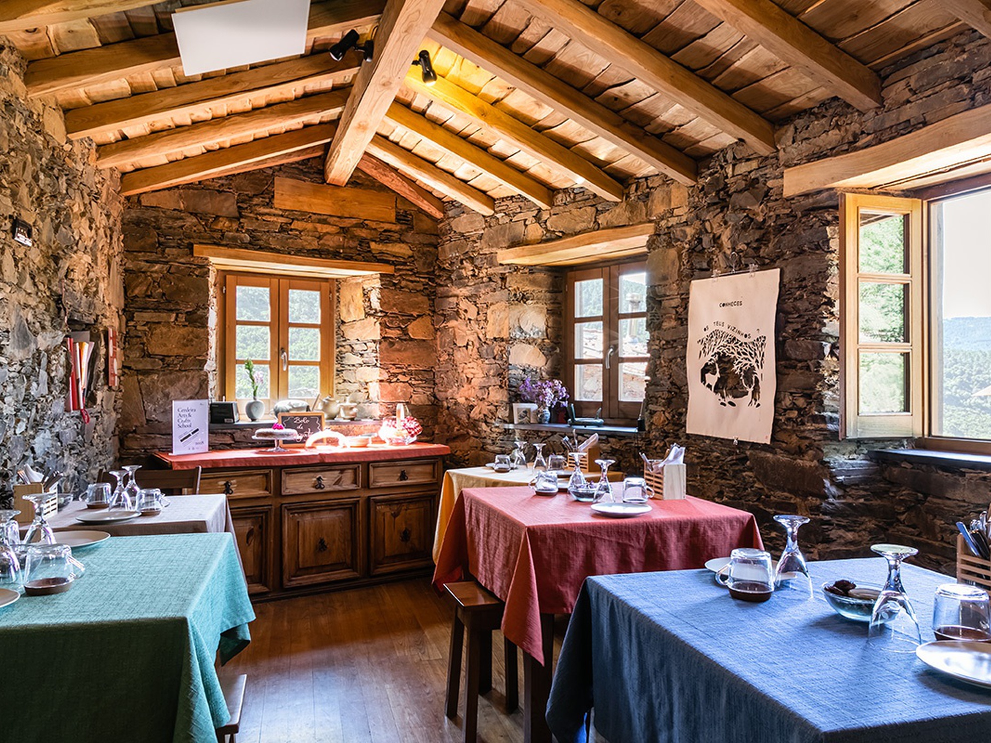 As casas de xisto estão equipadas para estadias de longa-duração. Durante a sua estadia, pode aproveitar para frequentar um dos muitos cursos e experiências criativas desenvolvidas na Escola de Artes e Ofícios.