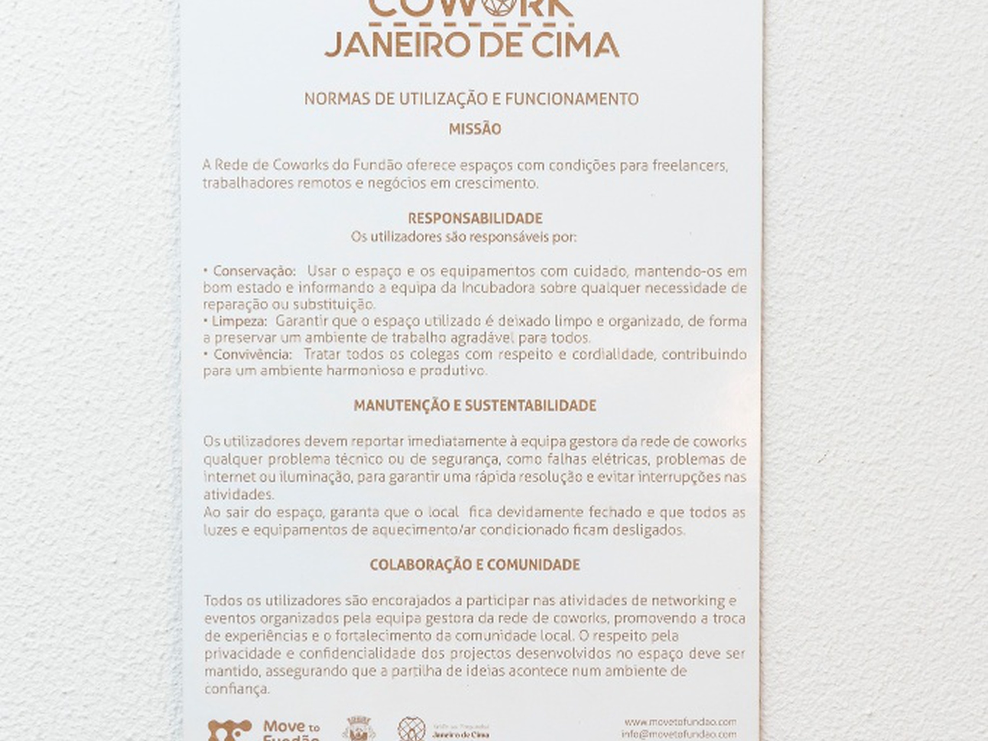 Integrado na Rede de Coworks do Fundão, o Cowork Aldeias do Xisto, na aldeia de Janeiro de Cima, oferece oito lugares a trabalhadores remotos, um computador de utilização gratuita, internet de alta velocidade e acesso 24 horas por dia, sete dias por semana.